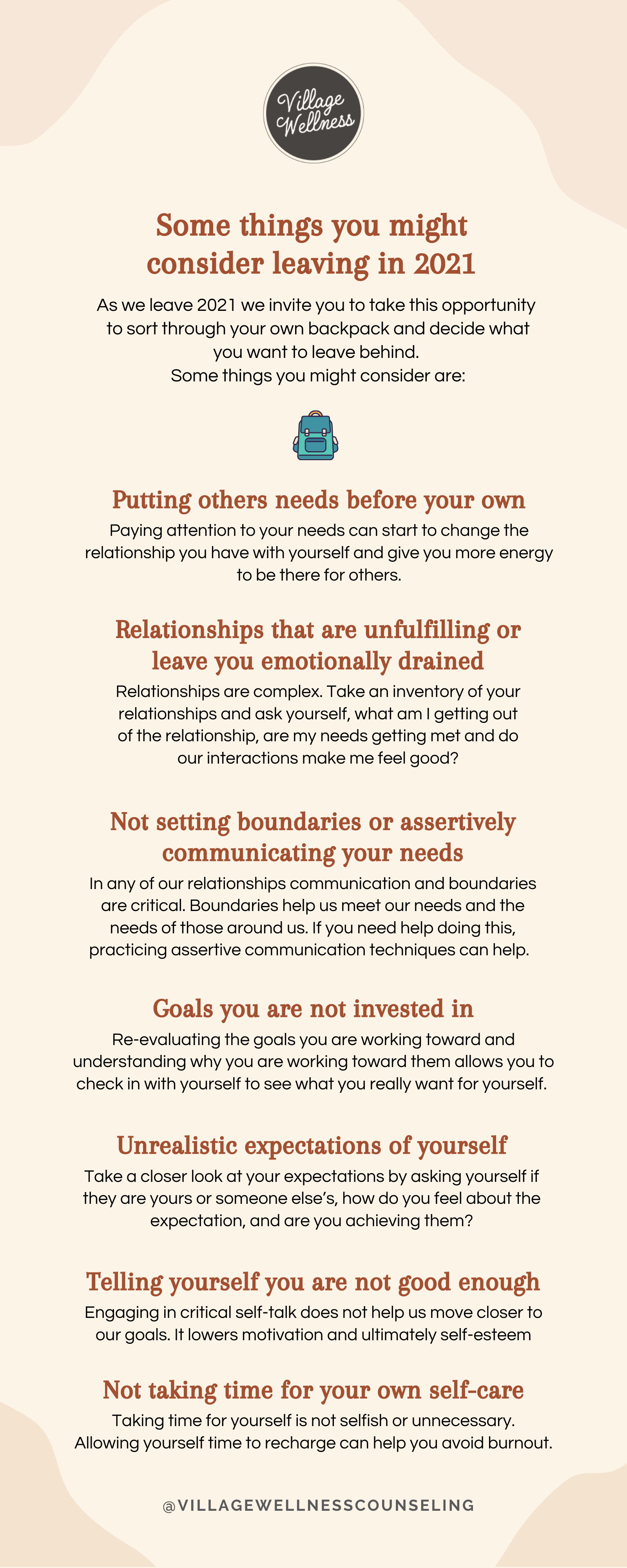As we leave 2021 and begin a new year, we invite you to take this opportunity to sort through your own backpacks and decide what you want to leave behind and what you want to carry with you.